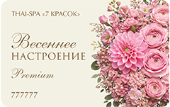Подарочная карта с возможностью выбора из SPA-программ продолжительностью 2 часа: «Oriental Relax», «Oriental Силовой» или «Thai-Classic» с 27 апреля по 10 мая. В остальные дни принимается к оплате в качестве депозитной карты номиналом 5 550₽ на любые SPA-услуги.